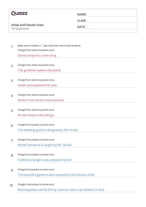 active passive voice grade 5 worksheet