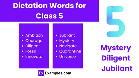 dictation words for class five