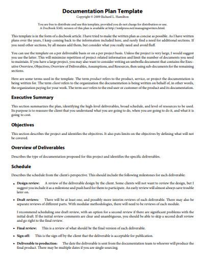 documentation plan examples
