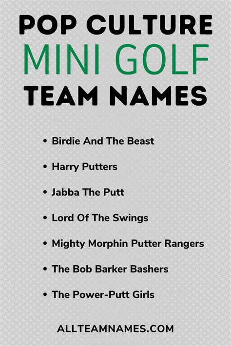 mini golf team name ideas