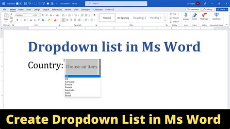 multi line drop down list word