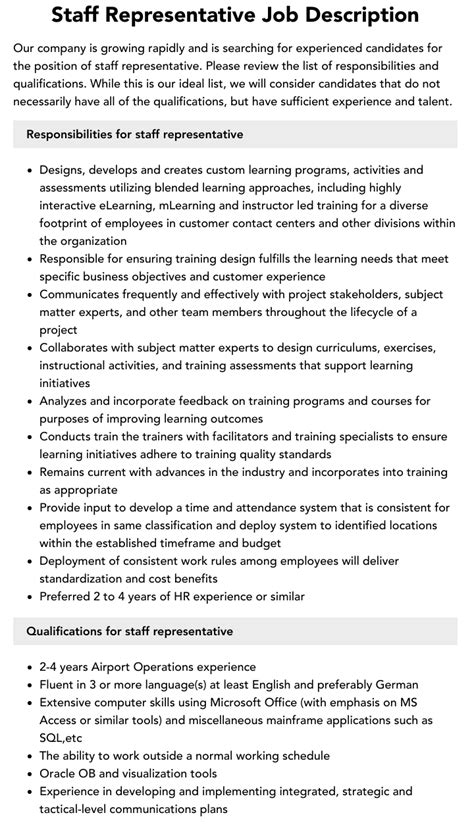 staff representative meaning