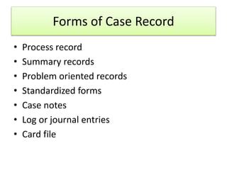 types of case work recording