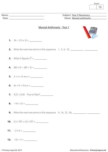 what is a mental arithmetic test